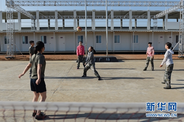 8月15日,在南苏丹首都朱巴的中国维和步兵营内,女兵们进行排球练习。联合国驻南苏丹特派团经常要赴当地难民营执行医疗救治、搜缴违禁品等行动,而根据联合国有关规定,一些行动要有维和女兵参与。