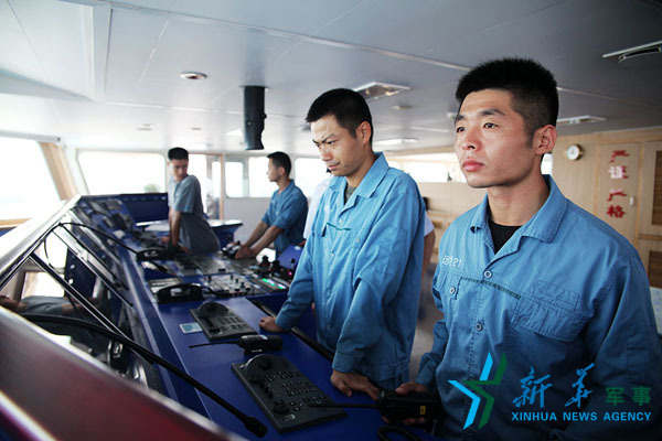 航海值班人员密切关注气象海况。亓创摄