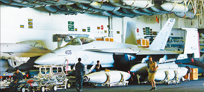 美国发布的一份审计报告揭露了美军长期存在做假账和腐败问题。图为美国尼米兹级核动力航空母舰内舱。高石摄