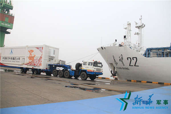 火箭集装箱通过陆路运输方式运抵远望22号火箭运输船。李晓波摄