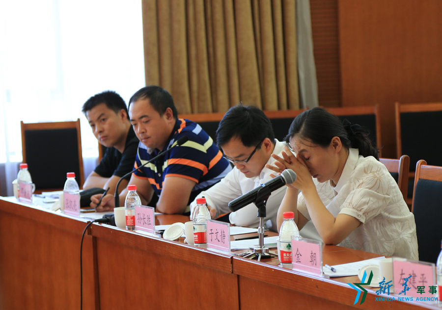 当听到李力强讲到张超的父母、妻子和两岁的女儿挥泪送别英雄时,北京市白庙北派出所(检查站)政委于文静(右一)不禁悲痛地掩面拭泪。方廷 摄