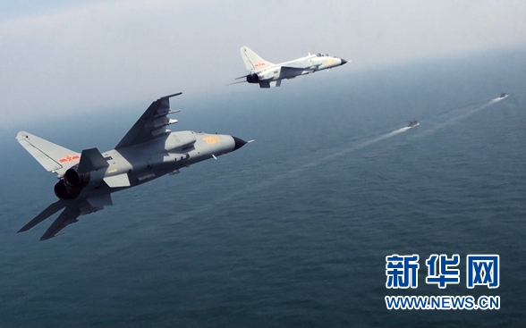 空军驻疆航空兵某旅组织飞豹战机在陌生海域实施武装警巡(8月25日摄)。 新华社发(车孟涛 摄)