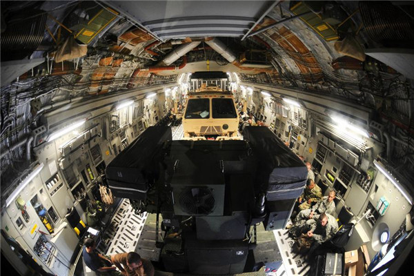 加拿大的C17战略运输机正在装载“复仇者”车载防空系统。