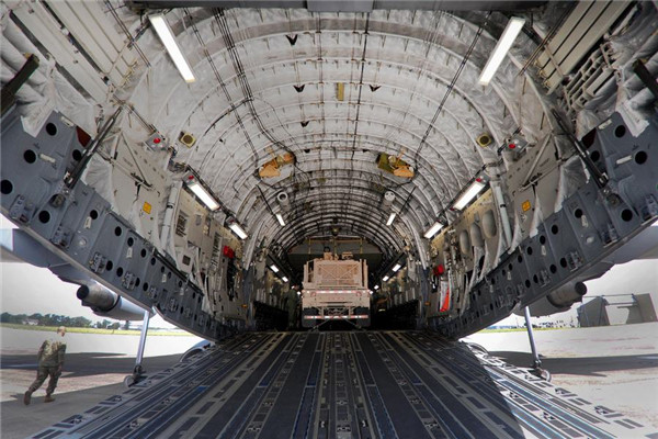 加拿大的C17战略运输机正在装载“复仇者”车载防空系统。