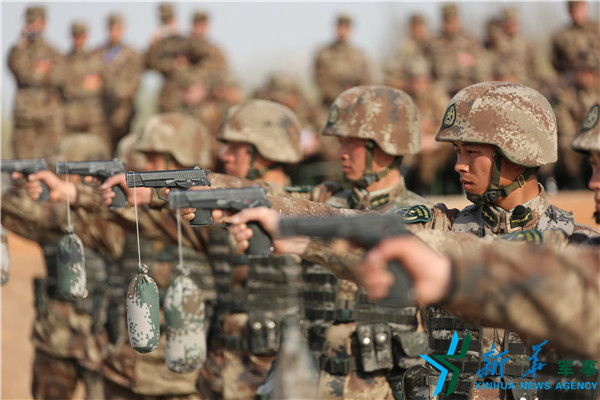 2015年初,这个师担负原兰州军区基础训练组织法集训任务,图为军官手枪射击教学示范。