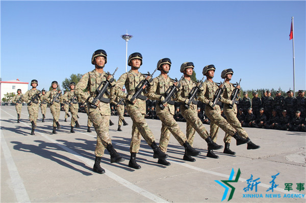 参加过纪念抗日战争胜利70周年国庆阅兵活动的战士为全团官兵进行队列示范.