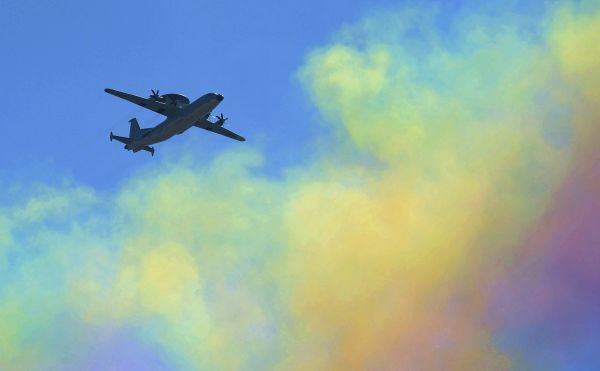 资料图片:2015年9月3日,中国人民抗日战争暨世界反法西斯战争胜利70周年纪念大会在北京隆重举行。这是预警指挥机梯队接受检阅。 新华社记者李一博摄