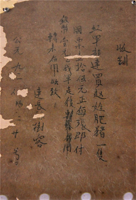 70多年过去,木板上的文字依稀可辨:“我们在这块田内割了青稞一千斤,我们自己吃了。这块木板可以作为我们购买你们这些青稞的凭证,请你们归来以后,拿住这块木板,向任何红军部队或苏维埃政府,都可兑取与我们吃你们青稞价值相等的银子、茶叶或你们所需的物品。在你们还未曾兑得这些东西之前,需要好好保存这块木牌子”,落款是前敌总政治部。