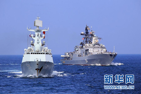 9月16日,中国海军黄山舰和俄罗斯军舰“特里布茨海军上将号”反潜舰组成编队驶向演习海区。当日,中俄“海上联合-2016”军事演习在湛江以东海空域举行了海上联合行动演练。演练采取灵活机动的导调方式以检验参演双方的训练水平和技战术能力。演练中,中俄双方依托首次使用的中俄海上联合专用指挥信息系统,及时掌握“战场态势”,并依此快速、果断定下作战决策,严密组织攻防行动,达到了演练的检验效果。新华社记者 查春明 摄