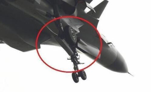 资料图片:网传的弹射版歼-15起落架舱门特写。(图片来源于网络)