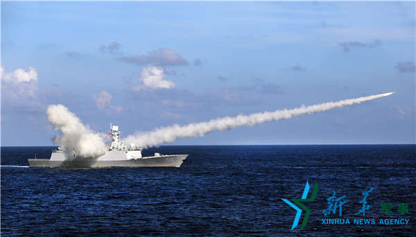 海军在海南岛至西沙附近海空域组织实兵实弹对抗演练,这是导弹护卫舰运城舰发射反舰导弹(7月8日摄)。新华社记者查春明摄