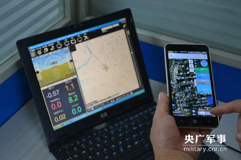 图为手机笔记本电脑控制无人机。钟伟 摄