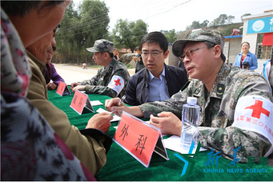 义诊中杨波总是穿着军装带着红十字袖标,他说:“这会让我们赢得老区人民的信任,也让我们有一种职业的自豪感,更意味着要肩负更多的责任。”刘百元 摄