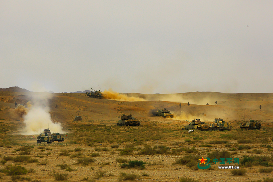 装甲攻击群突破“敌”前沿防御阵地,向阵地目标发起猛烈打击。