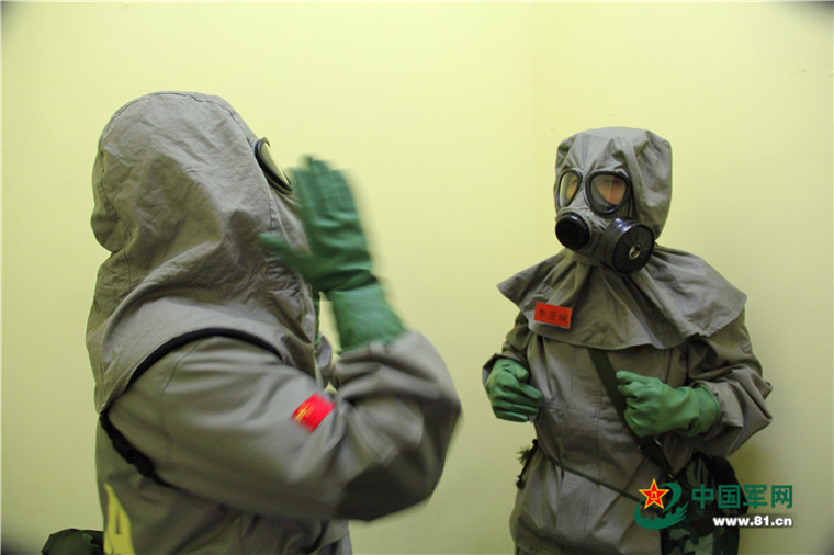 “请您更换防毒服,进行气密检查。”一位年轻的工作人员向记者发出指令。接过深褐色的防毒服,按照提示,穿上防毒衣裤和靴子、戴上防毒面具和防毒手套,与同行伙伴熟练而快速的动作相比,记者显得笨拙了很多。即使这样,同行伙伴依然向记者竖起了拇指:“第一次就能够心不慌手不乱,不容易。”