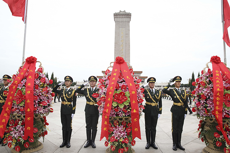 2014年9月30日,烈士纪念日向人民英雄敬献花篮仪式在京隆重举行。新华社记者 兰红光 摄