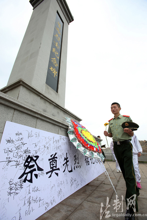 2016年9月29日,我国第3个烈士纪念日来临前夕,江苏连云港边检站组织边检官兵和连云港市海滨中学学生一起在天河革命烈士陵园烈士纪念碑前瞻仰革命先烈