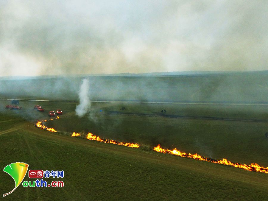 国庆节前夕,锡林郭勒大草原上一列橘红装甲车疾驰而过,一时间,一条长约1000米的火线被扑灰飞烟灭。