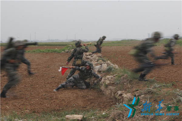 该旅官兵在演习中冲锋。图片由陆军第40集团军某摩步旅提供