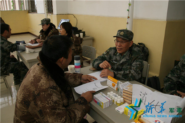 年过七旬的消化内科专家刘端琦在沱沱河兵站为官兵进行诊疗。庄照来 摄