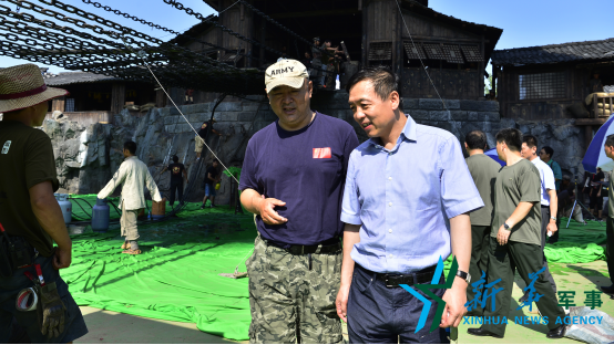 中影股份有限公司董事长喇培康、总经理江平在拍摄现场