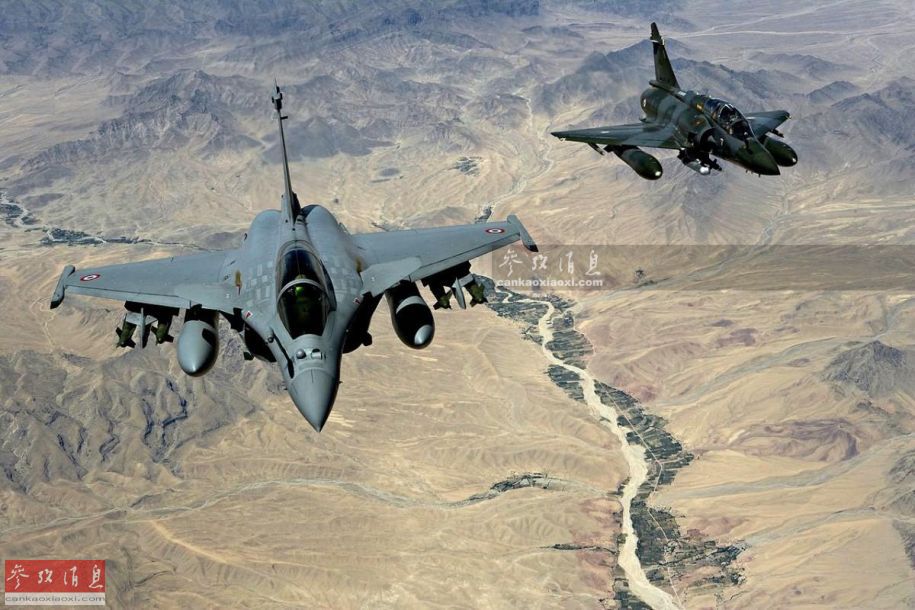 图为2011年12月(利比亚战争期间),法军“阵风”和“幻影”2000战机在利比亚上空飞行,可见“阵风”翼下挂载的AASM空地导弹。
