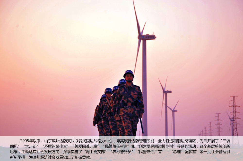 自2005年以来,山东边防总队滨州边防支队以“爱民固边战略”为中心,忠实履行边防管理职能,把“访民情、知民意、排民忧、解民难”作为具体的爱民行动,打造和谐边防辖区。