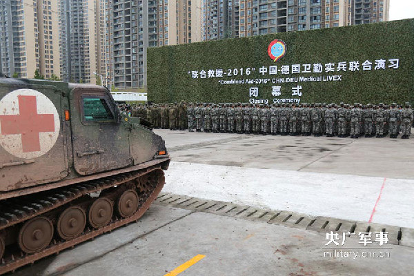 “联合救援-2016”中国-德国卫勤实兵联合演习闭幕式现场。邓曦光 摄