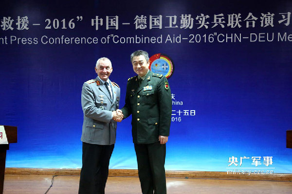 中德卫勤实兵联合演习媒体见面会现场。邓曦光 摄