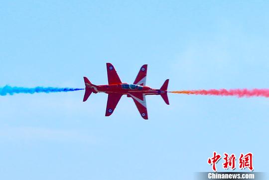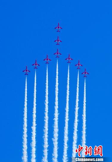 英国“红箭”首次在华秀特技 展现9机编队高难度动作