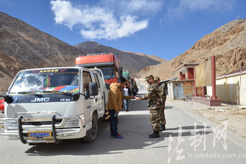 西藏自治区交通厅工作人员陪同尼泊尔车队押运人员前来该站申请办理尼泊尔借道运输机械物资出境手续,该站接到申请后立即会同海关、检验检疫为其开通绿色通道,同时抽调精干力量组成勤务小分队完成该批机械物资出境边防检查任务。在整个检查过程中,该站采取双人单车的执勤模式,提高了车辆检查验放速度,并将运输车队监护至中尼边境,有效保证了四辆卡车机械货物安全装卸和顺利出境,得到了尼方押运人员和口岸相关单位的高度评价。(谭海洋)