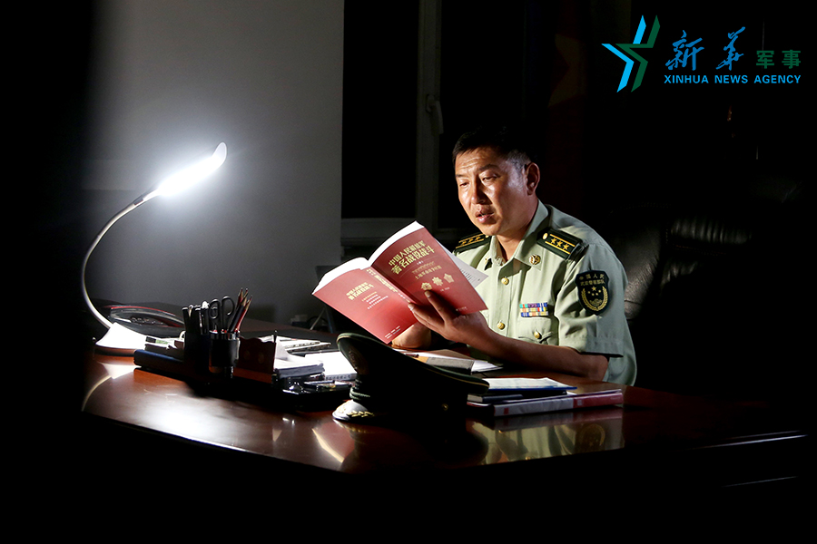 每天晚上,王刚都要自学中外战术战法,阅读战士的来信。李鹏 摄