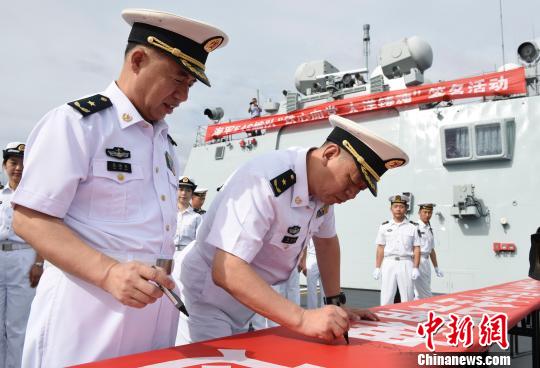 编队指挥员、北海舰队副司令员黄新建勉励大家:“这次签名活动,签的是忠诚、签的是责任、签的是承诺。大家要牢记使命、不忘初心,始终把忠诚举过头顶,用长征精神照亮航行之路。”