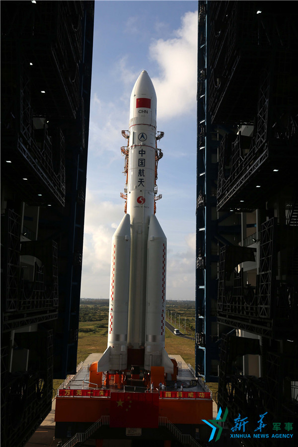 长征五号/远征二号离开技术厂房。新华社记者王建民摄