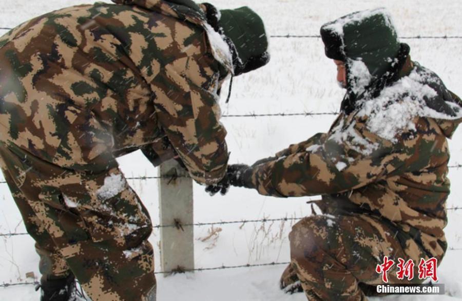 11月10日,新疆阿勒泰地区连降大雪,新疆公安边防总队阿勒泰边防支队托普铁热克边防派出所官兵克服道路艰险、气候严寒等困难,通过骑乘军马和徒步的方式进入中哈边境一线,实地察看重点通外山口和要道,全面掌握边境一线动态,严防不法分子潜入潜出,确保边境地区安全。石晓坤 摄