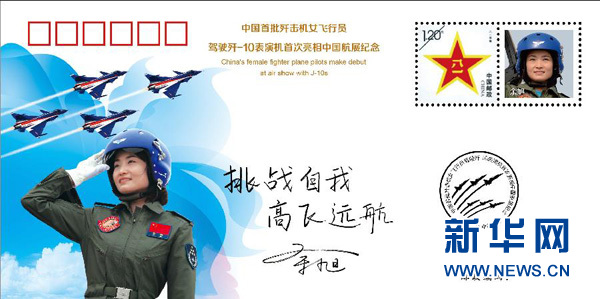 空军歼-10女飞行员余旭参加中国航展纪念封。新华社发