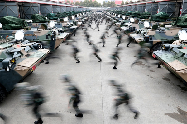 叶挺独立团官兵进行紧急拉动演练(9月3日摄)。新华社发(申冬冬 摄)