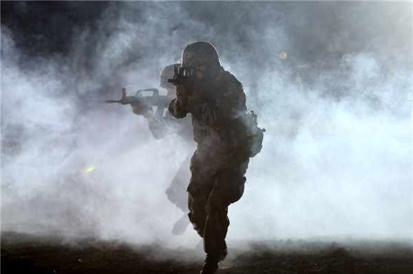 叶挺独立团官兵进行夜间进攻演练(5月26日摄)。新华社发(申冬冬 摄)