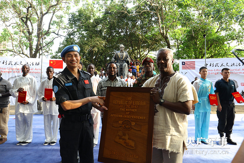 中国第四支驻利比里亚维和警察防暴队表示:中利友谊健康发展,中国武术文化受到利比里亚人民广泛喜爱和认可,为此第四支驻利比里亚维和警察防暴队倡导并举行中利武术交流活动,通过“以武会友,以武正道”传承交流中国文化精粹,让利比里亚人民多一扇了解中国的窗口,共享优秀文化成果,增进两国友谊和了解,注重塑造文化多样和谐的文明大国形象。(明俊 郑志刚 李金良)