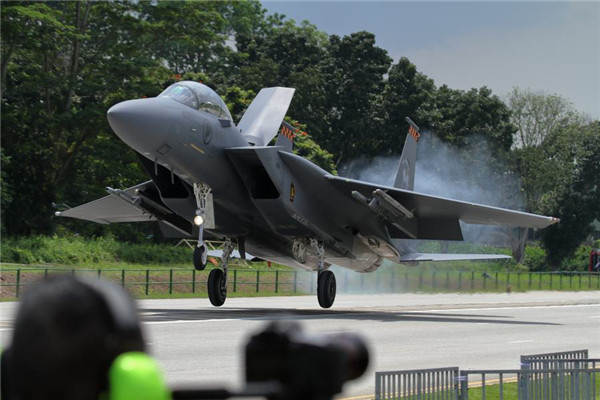 新加坡空军的F-15SG和F-16C/D近日进行了公路起降训练。这种训练是模拟在战争中,在机场被炸毁无法使用的情况下如何利用民用道路进行战机起降的活动,为了减少降落时的滑行距离,甚至动用拦阻索来拦停飞机。