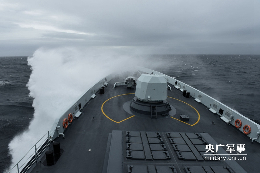 盐城舰在风雨中搜索目标。来永雷 摄
