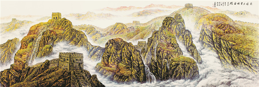 由温润山水转变为枯焦山水,或许更能体现王界山某种内在的精神需求。他的焦墨山水较偏重于从写生而得,景实而墨苍。这或许仍然体现了张仃对他的深刻影响,抑或长期生活于齐鲁、燕赵的自然人文特征对于他艺术的某种再塑。他的这些焦墨大多出于写生,自然对象的丰富鲜活既是他凝固于画面最浓郁的画意,也是他突破传统程式写出自己真感受、真性情的依据。但他也总能从写生中跳出,使画面获得更加丰厚的笔墨意象、更加郁勃的精神个性。在这些焦墨山水画里,界山画的最多的是燕赵长城、黄土高原和他自己家乡青州周边的山山水水。他的这些画作很少涉及那些人们熟知的名山胜水,总是力避浮华与润秀,而从阡陌田垄、原野土坡、沟壑山梁那些原始的乡村山野中寻求素朴的诗意与质朴的美感。他选择的这些山水对象,显然不是秀雅灵巧的典型,而是那些本不入画的粗砺浑厚、生拙苍茫、伟岸敦实的原始风物。这里既体现了他素朴的以民众为本的现实主义美学选择,也体现了他另辟蹊径、独到发现的审美探寻。
