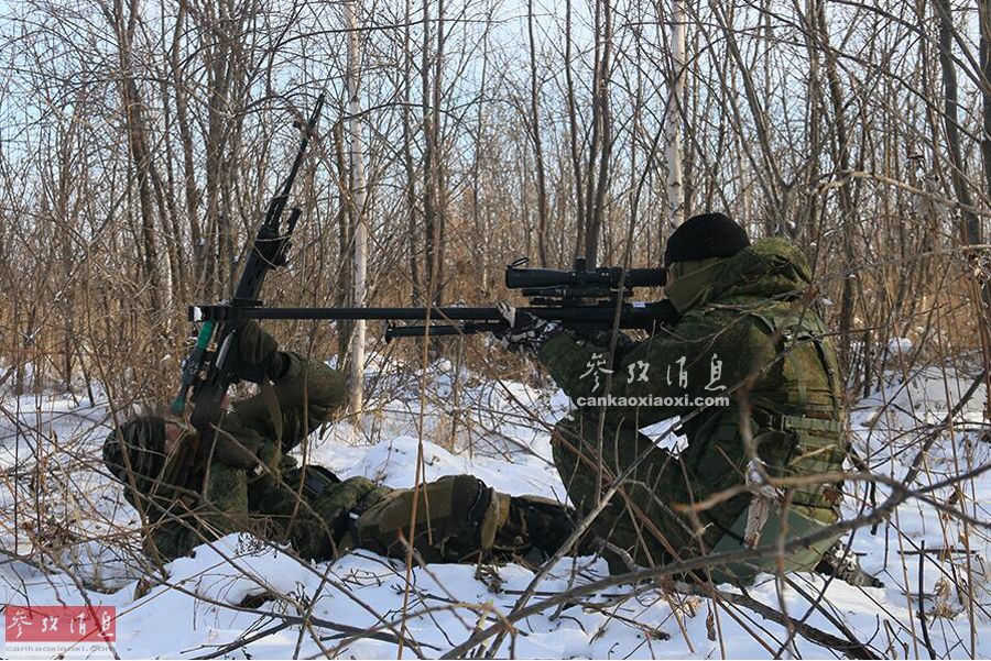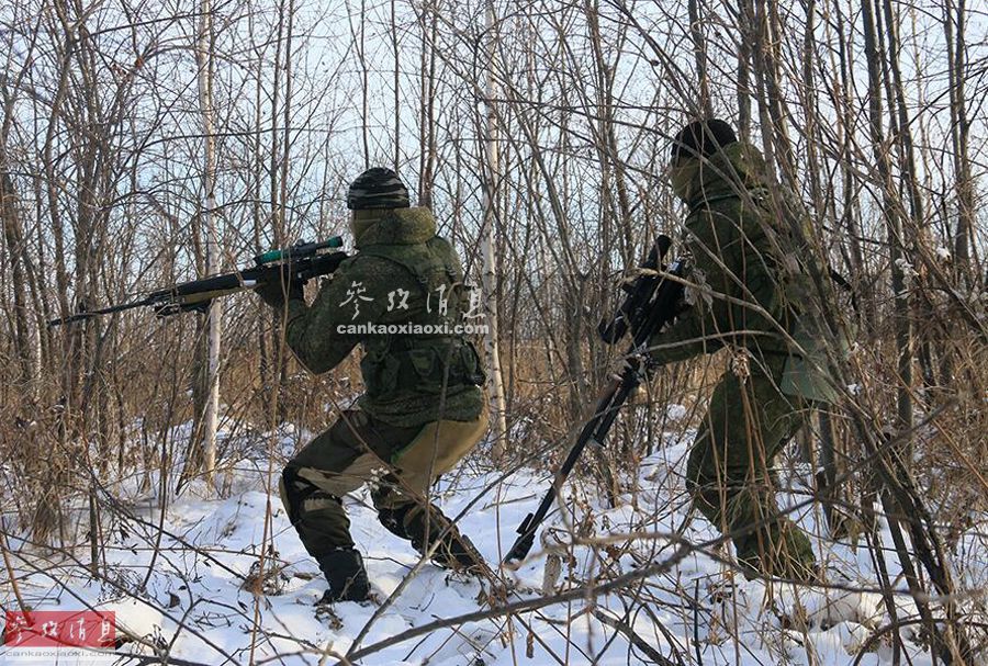 SVD狙击手掩护KSVK重狙手在林中潜行。