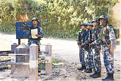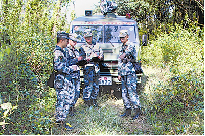 这次巡逻的目标是某界桩,距离连队约25公里,有很长一段路须步行。一路上,白冬杰对照地图讲解地形、方位,哪里有便道、哪里易塌方……白冬杰嘴不停歇。