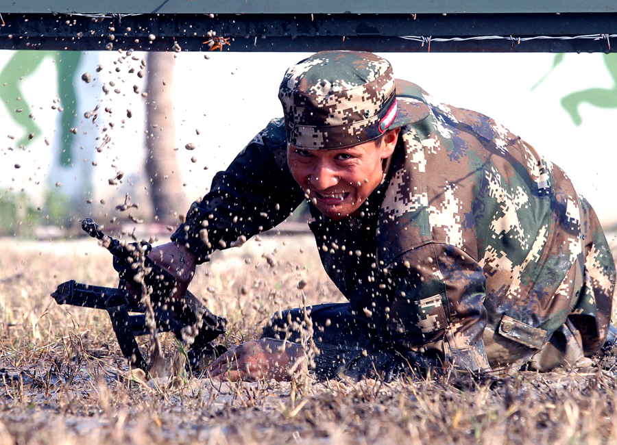 12月5日,艾麦尔·吾斯曼进行突击训练。新华社记者 陈飞 摄