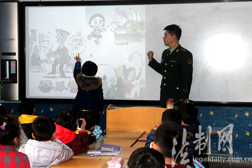 “哪位小朋友能告诉大家,上面这张图片上的叔叔有哪些不文明的出境行为”……,为使此次宣传活动收到实效,在教学中边检站官兵专门制作了文明出境宣传动画,生动形象的为同学们介绍了文明出境的相关常识,并以“大家来找错”的方式,引导孩子们主动指出并抵制出境中可能出现的不文明现象,提高孩子们的学习兴趣,在寓教于乐中引导广大师生做出境旅游的文明使者。最后边检官兵还与同学们进行了互动交流,进一步加深了对授课知识的理解。