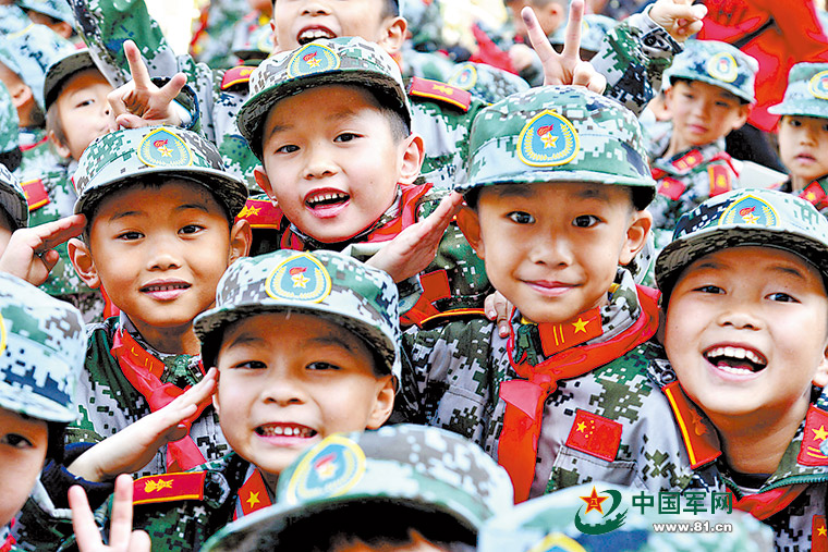 瞧,“老山少年军校”的小学生穿上军校装多神气。王剑 摄