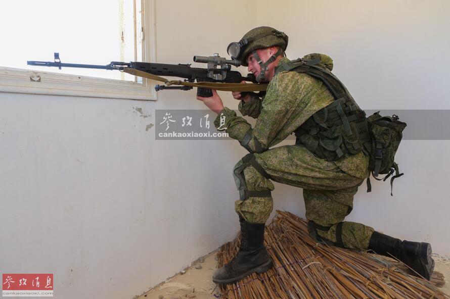俄军狙击手持SVD狙击步枪在窗口警戒。