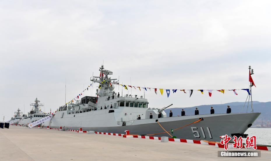 12月12日,中国自行设计制造的某新型导弹护卫舰保定舰、菏泽舰入列命名授旗仪式在江苏连云港某军港举行,标志着两舰正式加入人民海军战斗序列。保定舰、菏泽舰属同一型舰,舷号分别为511、512,满载排水量1300余吨。两舰装备了多套中国自主研发的新型武器装备,信息化程度高,隐身性能好,可单独或者协同其他兵力攻击敌水面舰艇、潜艇,具有较强的防空、反潜和对海作战能力。 中新社发 徐巍 摄
