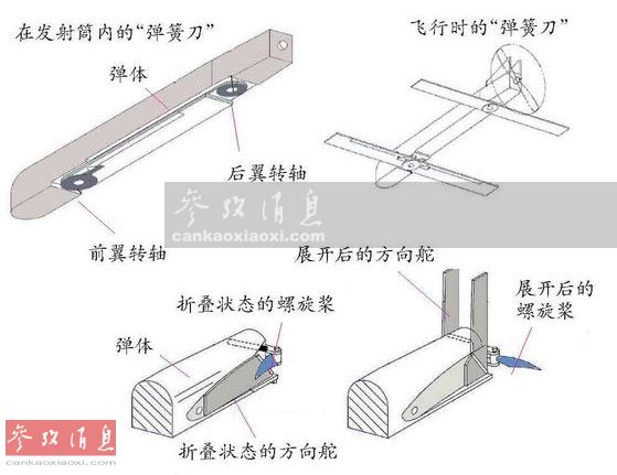 图为“弹簧刀”无人机折叠和展开机构示意图。